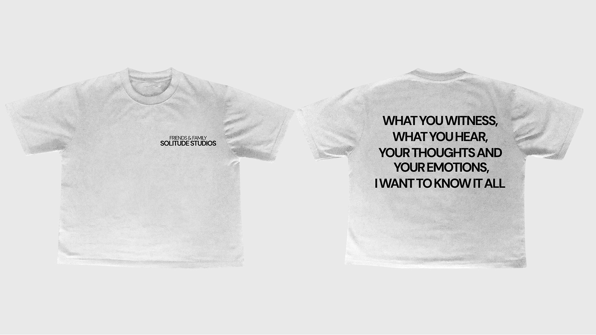 a solitude nasceu de uma vontade que não cabia mais só na cabeça. criada durante a minha graduação na faculdade de design gráfico, por amor à moda e à necessidade de fazer algo real, algo que representasse quem eu sou e chamasse atenção de quem batesse o olho. cada peça grita cultura pop, música e design. sem forçar, sem clichê.