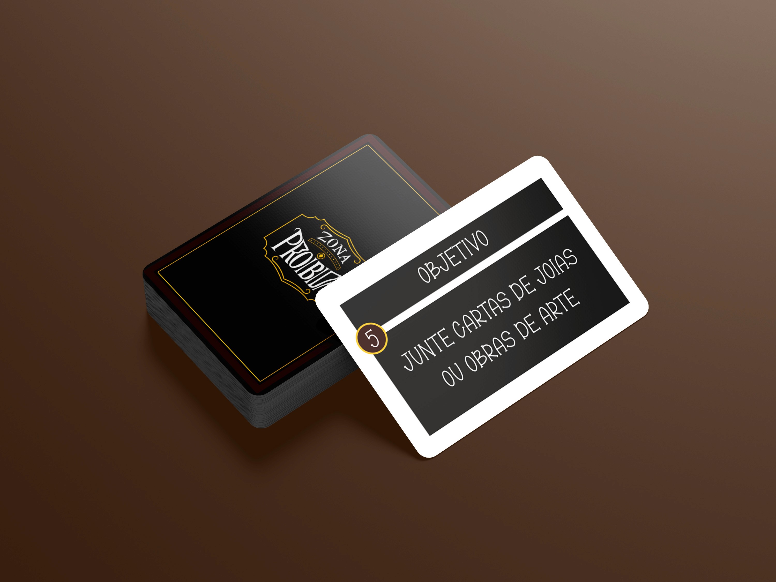 Cada jogador recebe 5 cartas e um personagem secreto com 2 objetivos.
